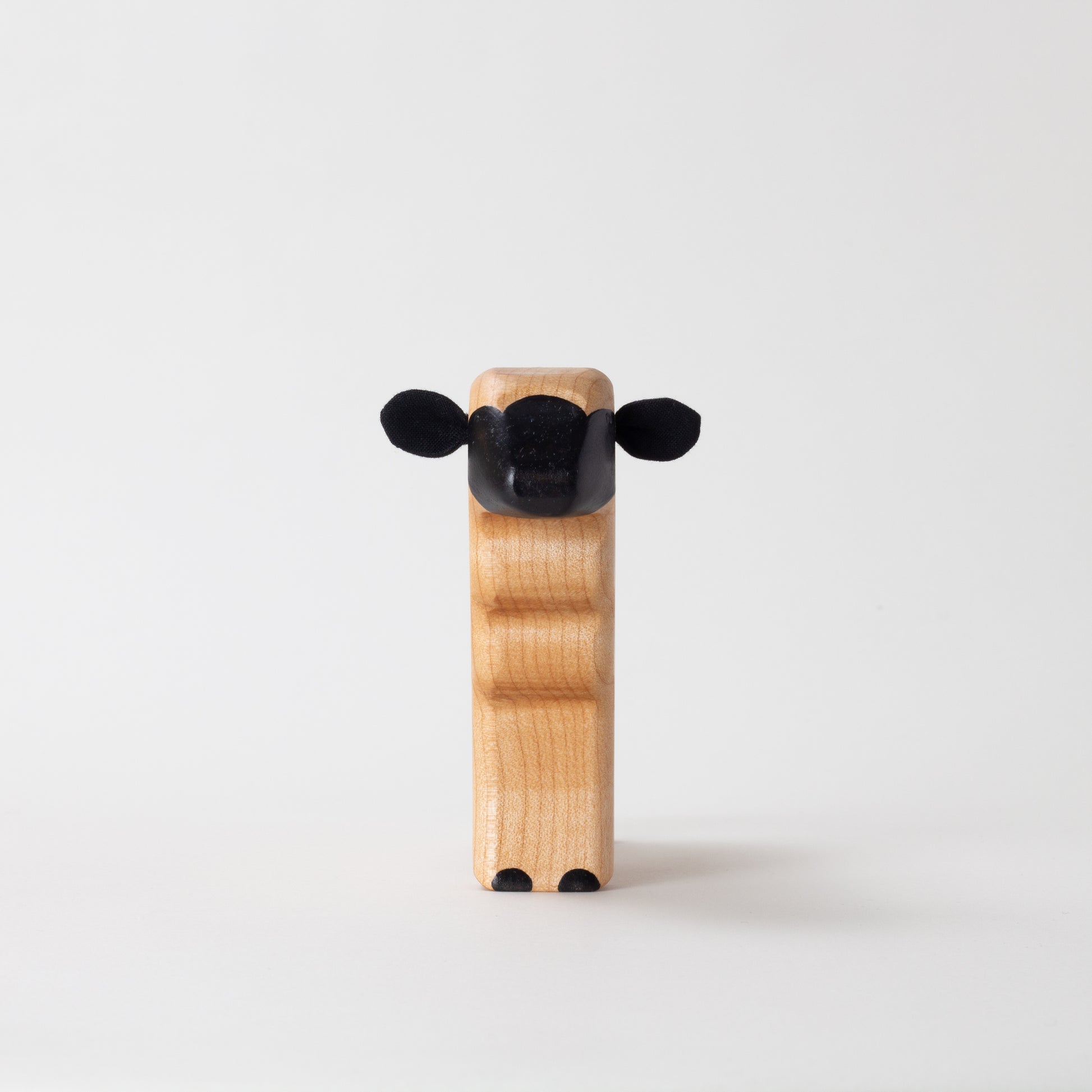 Inspired by the Valais Blacknose breed. This breed of domestic sheep originated in the Valais region of Switzerland. The black on its nose, eyes, ears, and feet are unmistakable for this breed.
