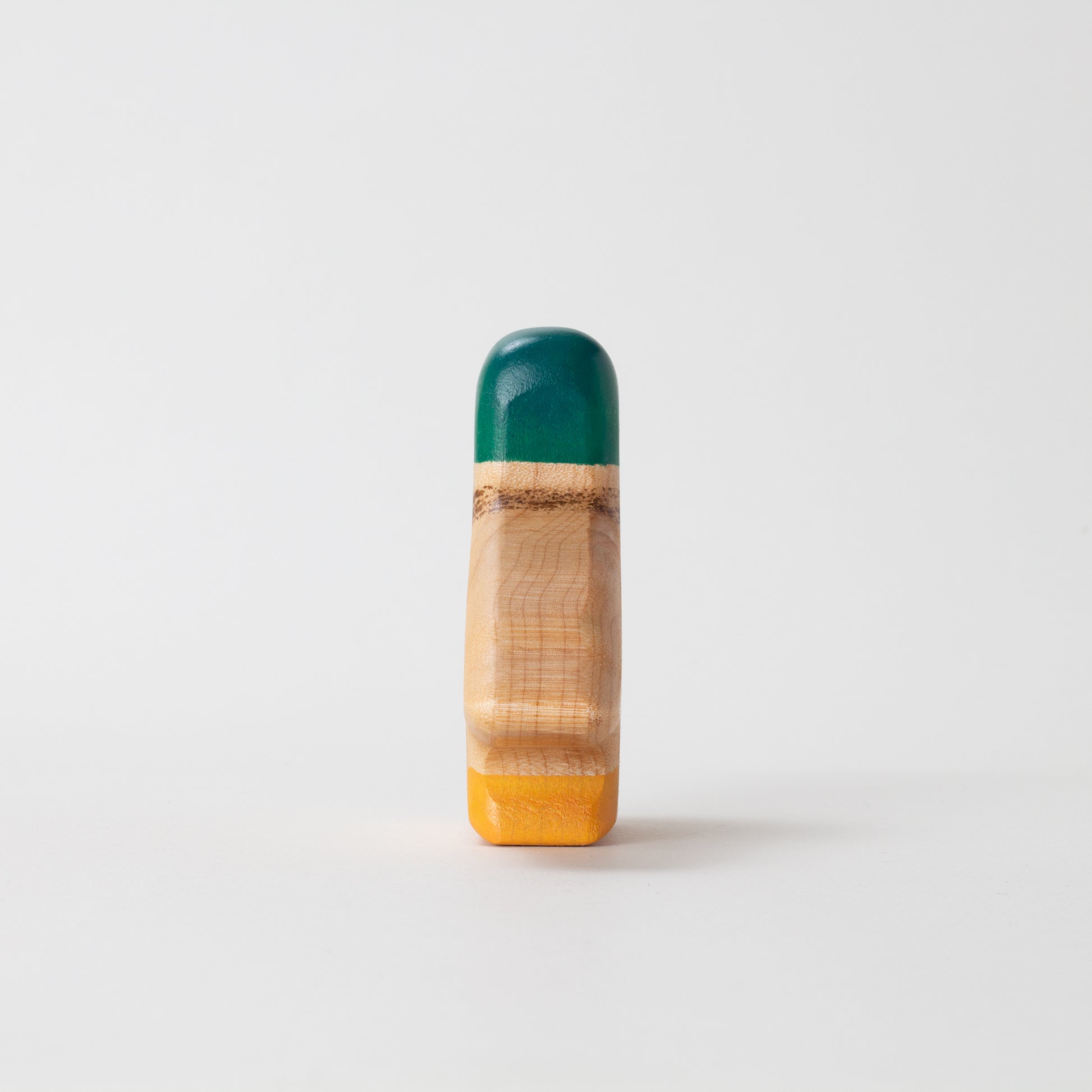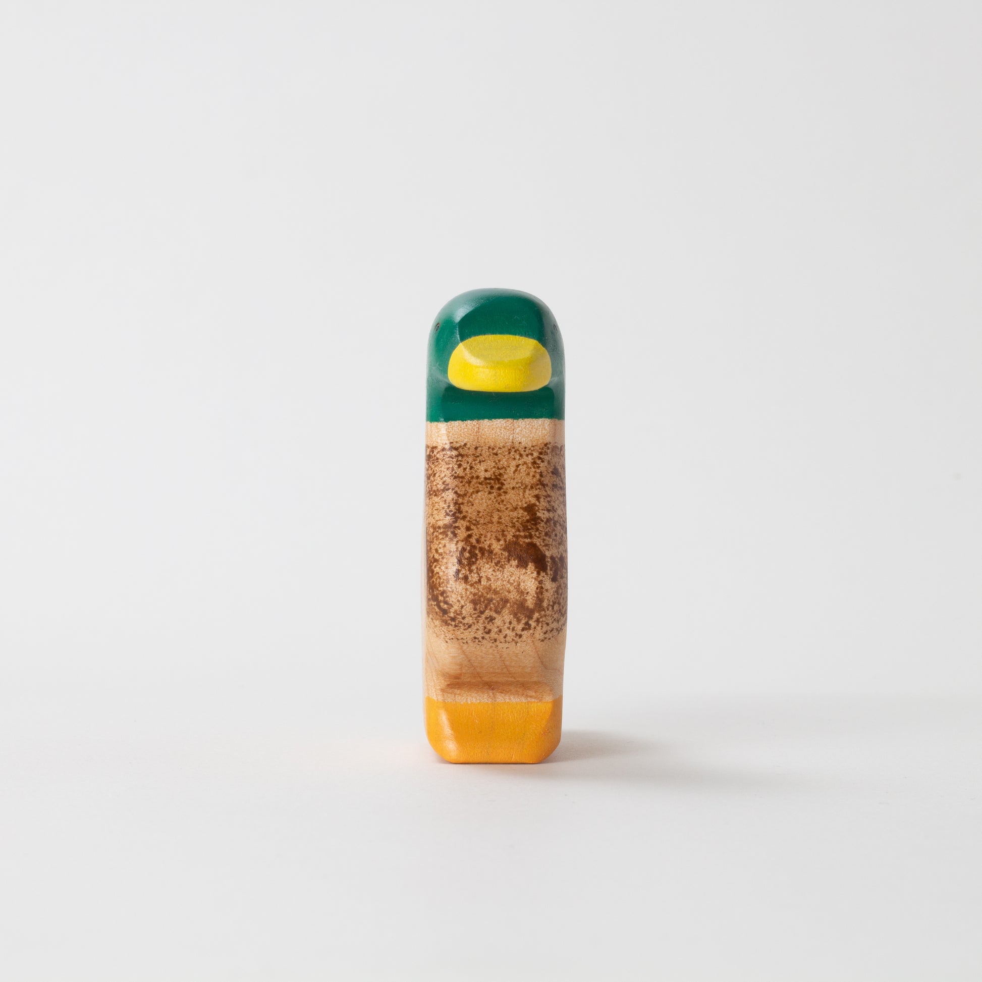 Inspired by the Mallard Duck. This breed lives in almost any wetland habitat. The male, also known as a Drake, has a recognizable green head, yellow bill, white collar around the neck and a brown breast.